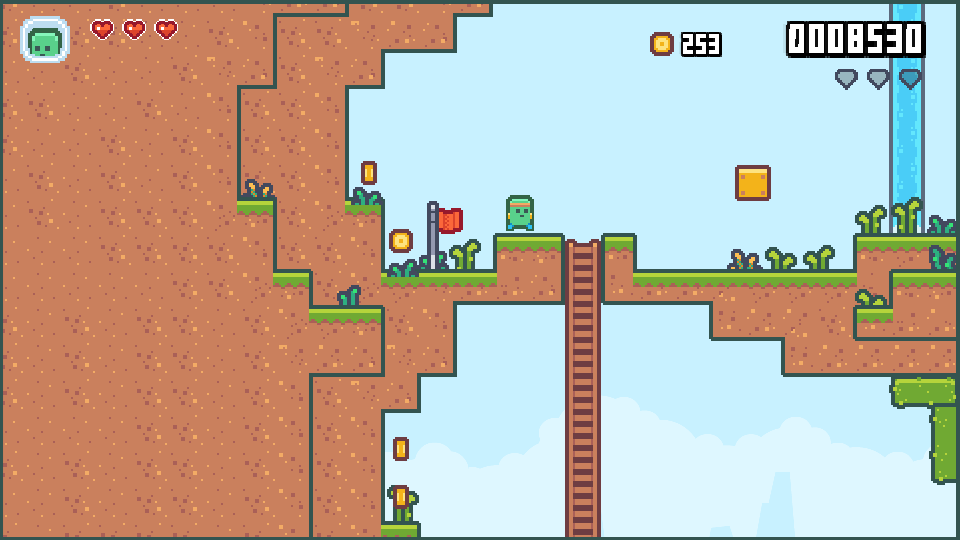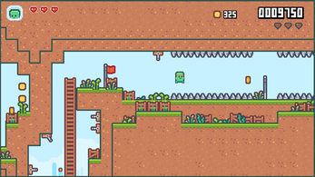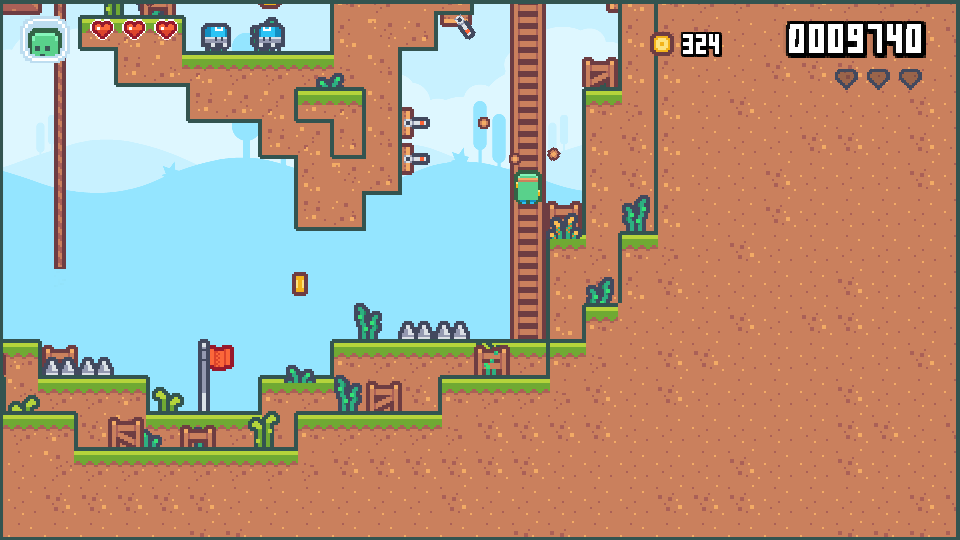 Also, it's too hard to tell the checkpoint flags from the end of the level. Normally that wouldn't be bad, but you also made it so that until you get all the diamonds, the end of the level is functionally instant death, forcing you to start over from the beginning and gather all the diamonds. I recommend making it so you have to press some interaction key to finish if you don't have all the diamonds and coins.